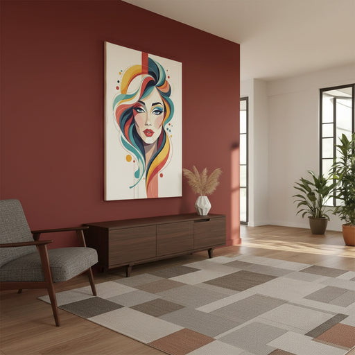 View full detailsLooking to add a bold statement piece to your home or office? This stunning canvas print features a vibrant geometric portrait of a modern muse, bl...