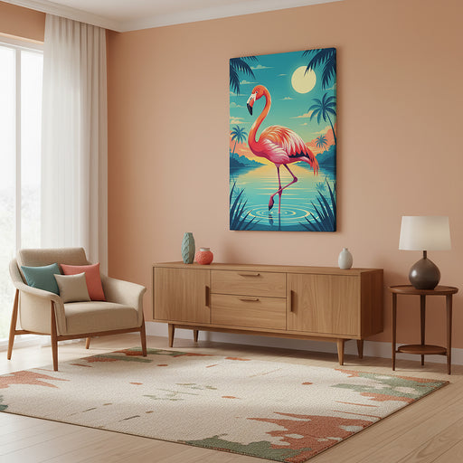 View full detailsBring a vibrant tropical escape into your space with this stunning flamingo canvas wall art. Featuring a graceful flamingo standing against a seren...
