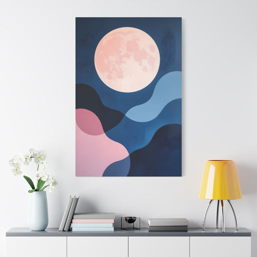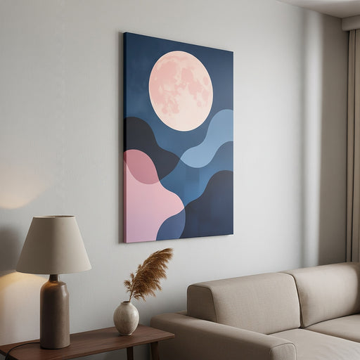 View full detailsElevate your space with the serene elegance of the Moonlit Flow Abstract Canvas Wall Art. Featuring a soft blush moon against deep blue tones and f...