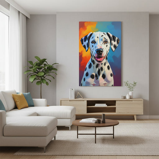 View full detailsAdd bold personality to your space with this vibrant Dalmatian canvas print. Designed to make a statement, this artwork blends expressive color wit...