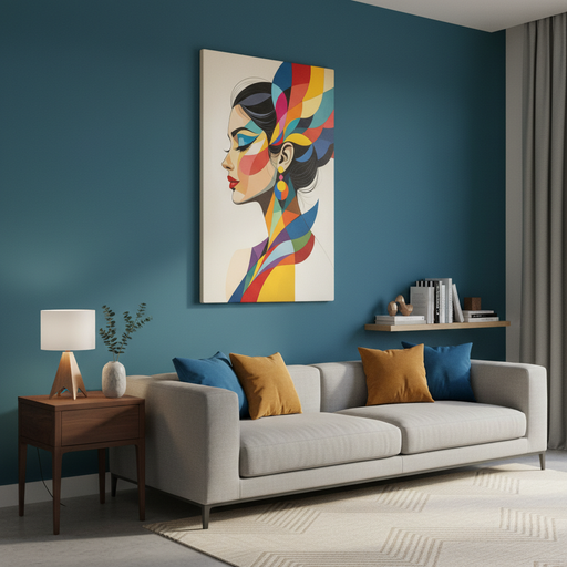 View full detailsAdd bold personality and artistic elegance to your space with this stunning abstract woman portrait canvas. Featuring flowing, vibrant hues of teal...