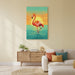 The Crowned Flamingo Sunset Canvas features a majestic flamingo wearing a golden crown, standing gracefully in calm waters against a warm sunset backdrop. With vibrant tropical tones and a modern illustrated style, this piece blends elegance with playful royalty.